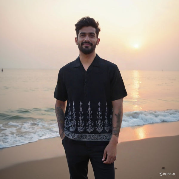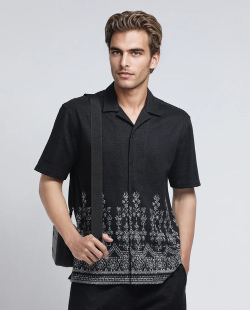 -Crafted from premium yarns, the shirt has a soft, smooth, and comfortable feel against the skin. The intricate weave gives the fabric a slightly heavier drape, enhancing its luxurious appeal.