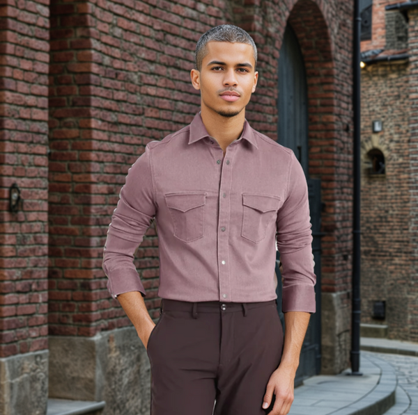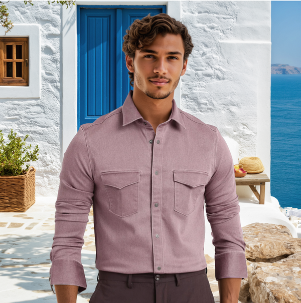 Solid Double Pocket Twill Shirt