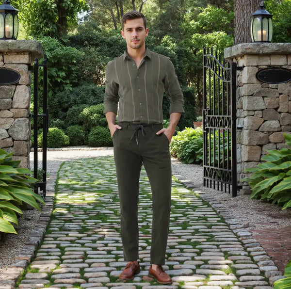 - A versatile design of stripe print on cotton, created on a dark olive background specially for you.
